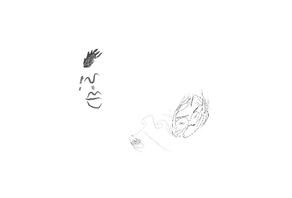 서로의 눈, 코, 입이 서로 겹쳐지고 합쳐저 하나의 얼굴로 완성된다.