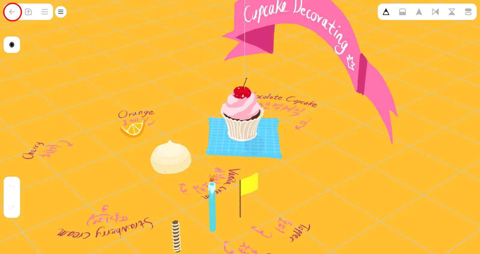 페더 어플 내 홈화면에 있는 “Rehearsal” 폴더를 열고, 그 안에 있는 “Decorate a cupcake” 파일을 눌러 열어보기