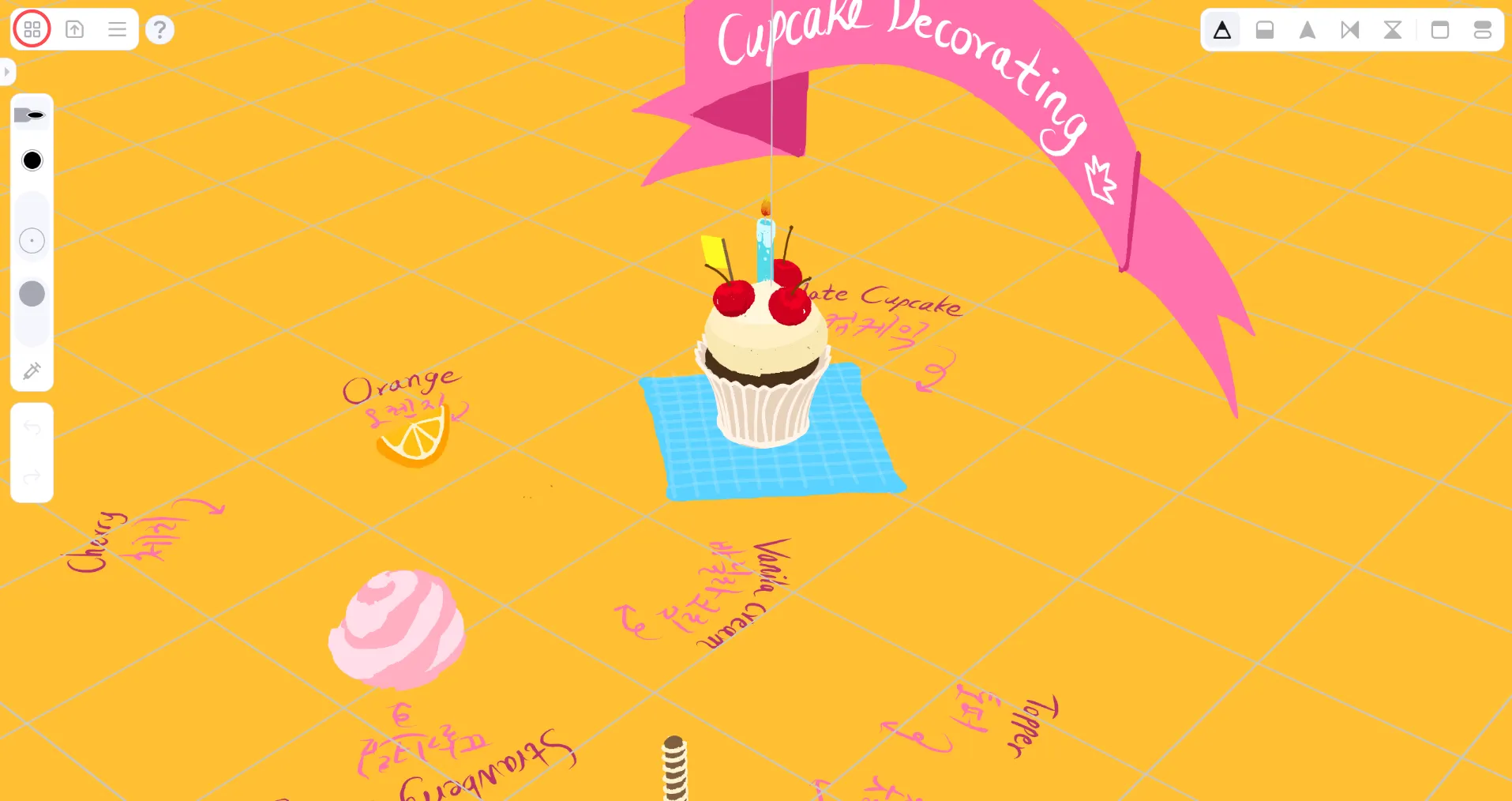 페더 어플 내 홈화면에 있는 “Rehearsal” 폴더를 열고, 그 안에 있는 “Decorate a cupcake” 파일을 눌러 열어보기