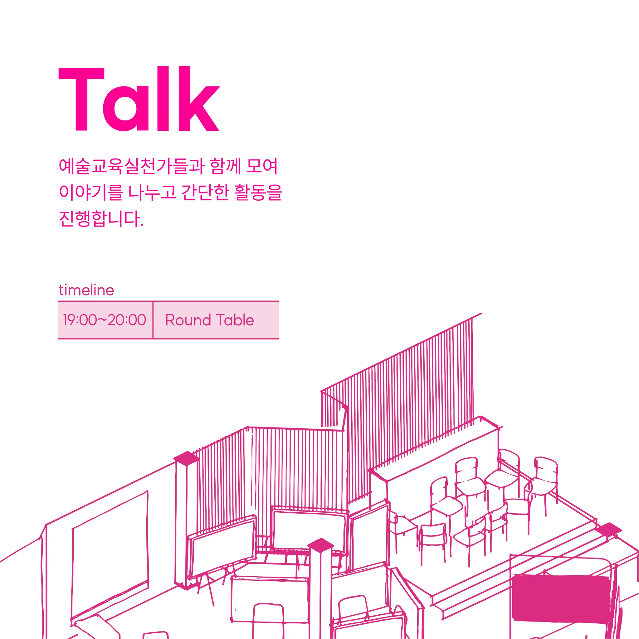 Talk 예술교육실천가들과 함께 모여 이야기를 나누고 간단한 활동을 진행합니다.