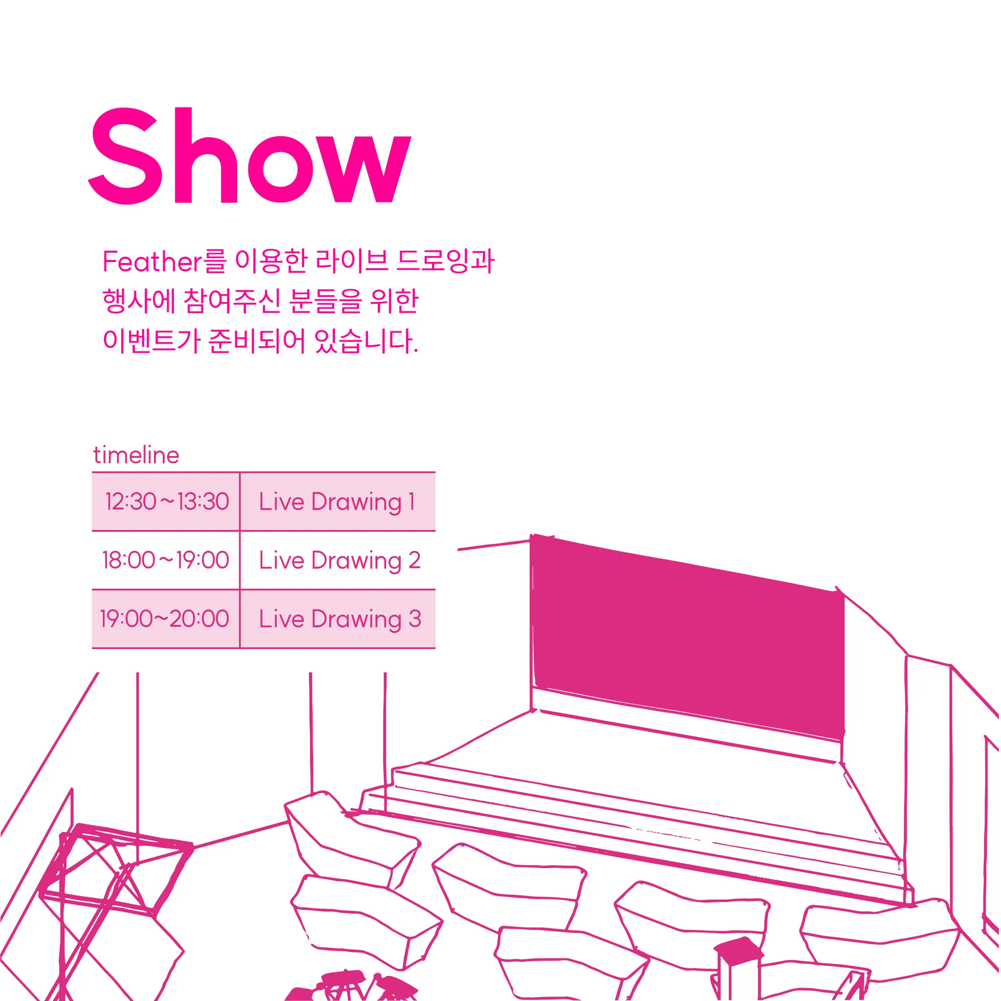 Show Feather를 이용한 라이브 드로잉과 행사에 참여해주신 분들을 위한 이벤트가 준비되어 있습니다.